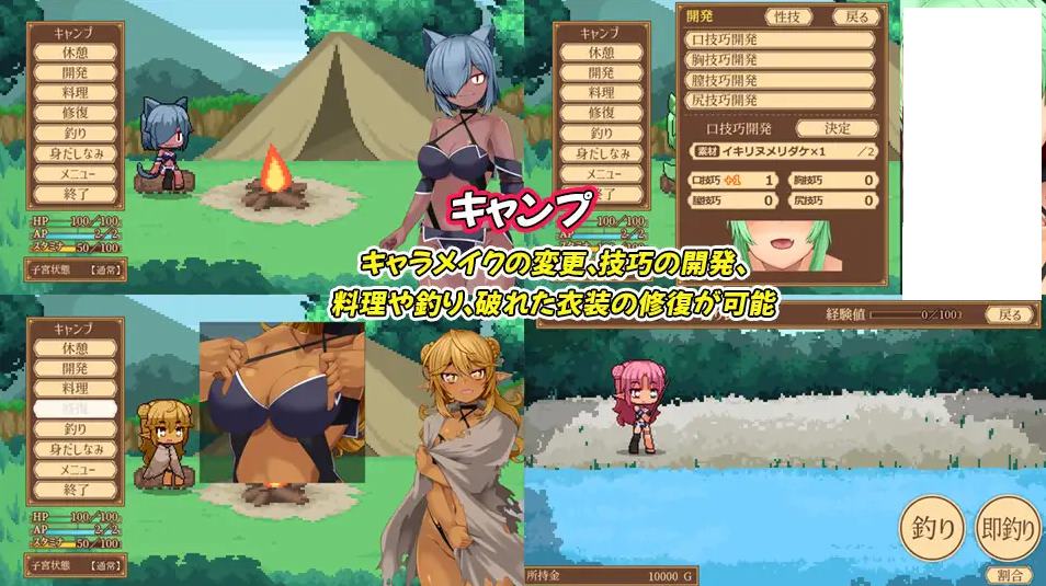 首先最直观的就是继承前作的堪称出类拔萃的捏脸系统游戏里全CG、像素绘、战斗绘、过场画面甚至剧情文本都做了对应外观的差分H内容也称得上量大管饱,不但从战斗H到事件再到C馆等等一应俱全而且每个H画面都配合了捏脸的差分,看起来特别赏心悦目。游戏性方面居然可以跟正八经的RPG游戏一样,三套武器切换!结合主副技能卡组搭配