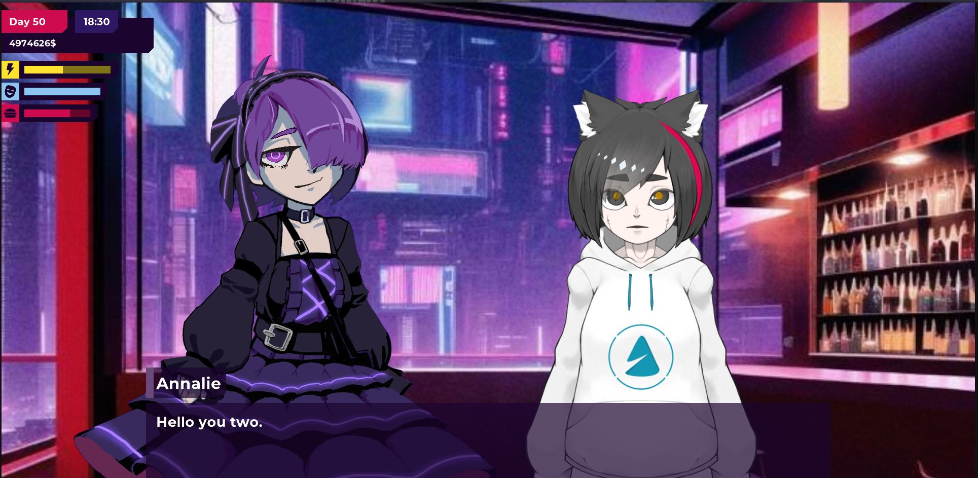 这是一款由[Incontinent Cell]开发者在PA众筹的作品游戏全程采用Live2D流畅运行,玩法也是相当充足,例如:BTC市场….还可以使用新部件定制机器人,以及多套衣服定制穿衣~