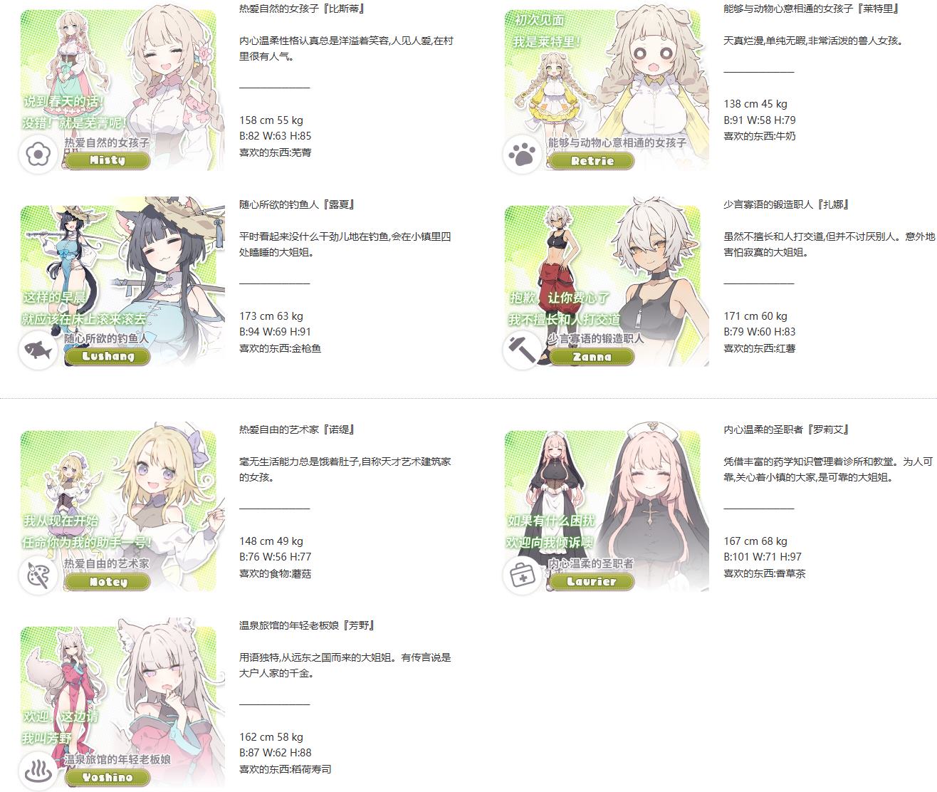 这是一款由[いなずまそふと]制作者在11月7号发布DL平台中文补丁标准种田游戏,游戏步调非常轻松,也不会跟某物语一样肝的一笔种田、钓鱼、料理、作首饰、采集、挖矿等等可选择的种类非常多游戏的UI跟场景设计都非常漂亮,音乐也选的很好很治愈,游戏的氛围非常让人舒服小镇的人物设计也是十分优秀。所有人的活动时间表虽然大致固定,当然角色中最重要的就是可攻略的七个女主角!没有后宫结局…所以要选择哪位女主角会让你烦恼了非常久,不论哪个女主角都非常有魅力除了与女主角们的散发甜蜜纯爱氛围的约会与H事件外,游戏中还有幸运桃花运小事件也是很好的设计终于有中文补丁。QAQ一开始出的时候我就想搬的,但奈何只有机翻