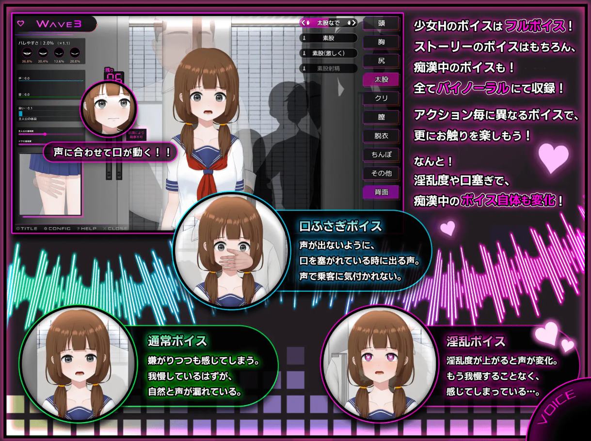 这是一款由[兎もに角]制作组在14号发布DL平台流程是经典的逐渐调教开发美少女,从耳朵小嘴到R头大腿能逗弄,并且提升总的淫乱度解锁更多动作从少女声音、玩具声音、动作发出的幅度和气味来增加暴露度,很有新意的想法游戏里也有脱鞋脱袜的描写,也能查看新玩法和初体验的回忆,比如初吻或者脱胸罩等等,量大管饱触摸的方式多种多样,扮演简直就是个完美的性骚扰者把