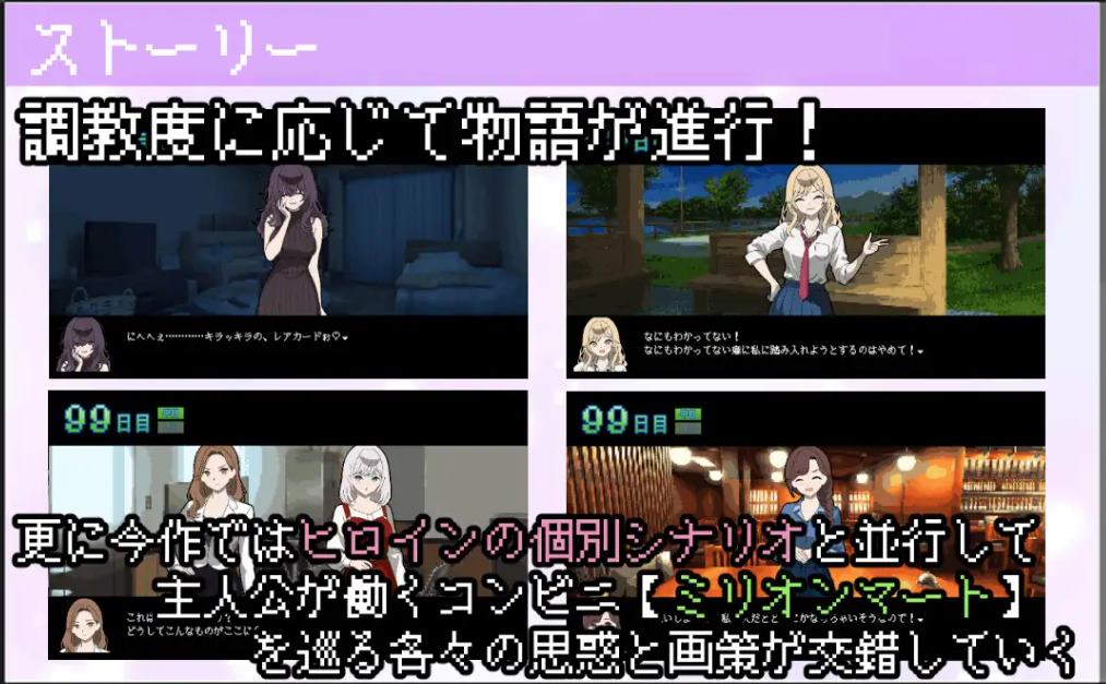 :某天,主人公突然被解雇,正处于绝望之中时,便利店“百万超市”的经理找到了他。他原本打算在便利店做兼职,开启新的生活,却不料经理突然离职。“百万超市”由于频繁的盗窃事件而陷入了财务困境。与此同时,主人公和他的高中兼职伙伴楠川小春制定了一个重建便利店的计划。“为了防止商店行窃,我们要惩罚那些偷东西的女孩!”在楠川小春的指导下,主人公奉命惩罚光顾便利店的众多女主角,并重建便利店。在店长去世后,主人公能否安全地守护好便利店呢?