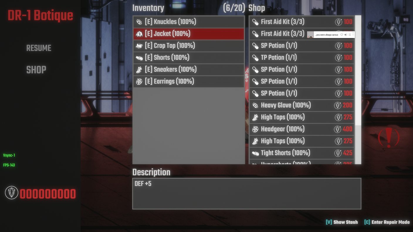 -添加了服装耐久度系统(取代了基于命中次数的简单服装损坏系统)。