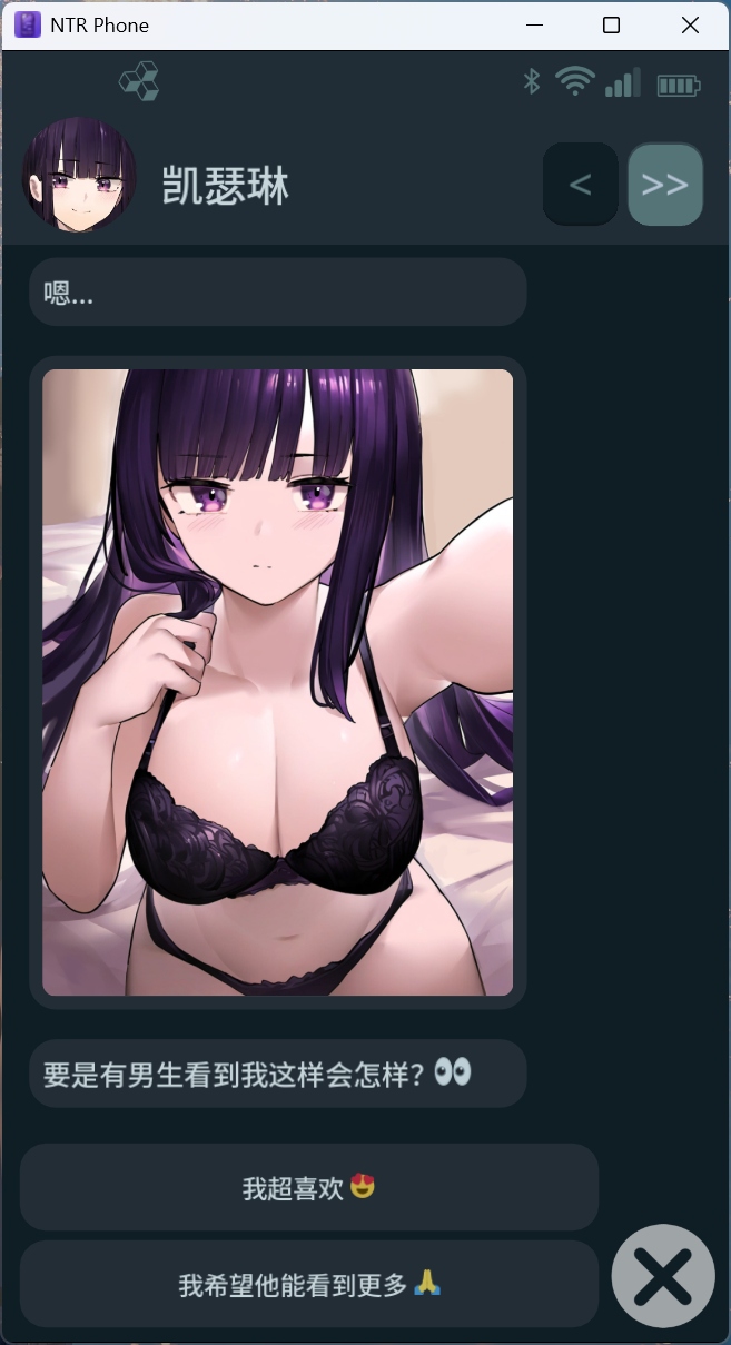 通过本应用与各类女孩聊天互动,体验多种结局路线,包括NTR(寝取)、NTS(寝取され)等多样化情节。